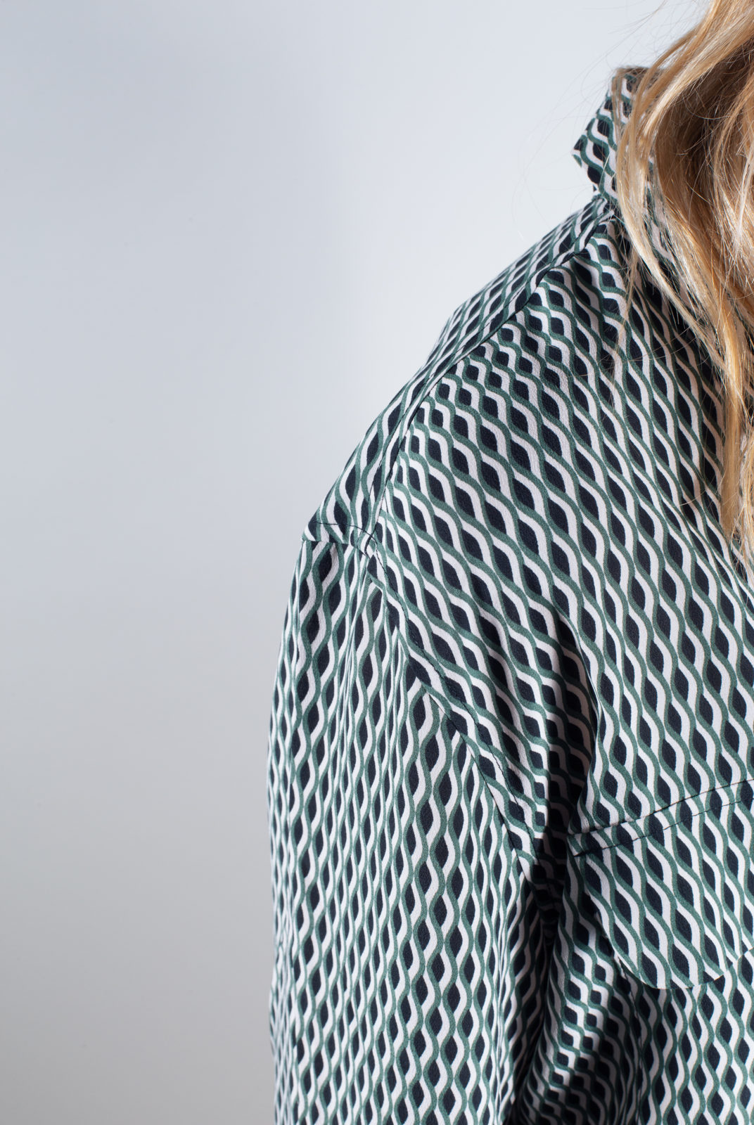 - Cut for a loose fit, long sleeves, button fastenings through the front, two front pockets, lightweight, non-stretchy fabric
