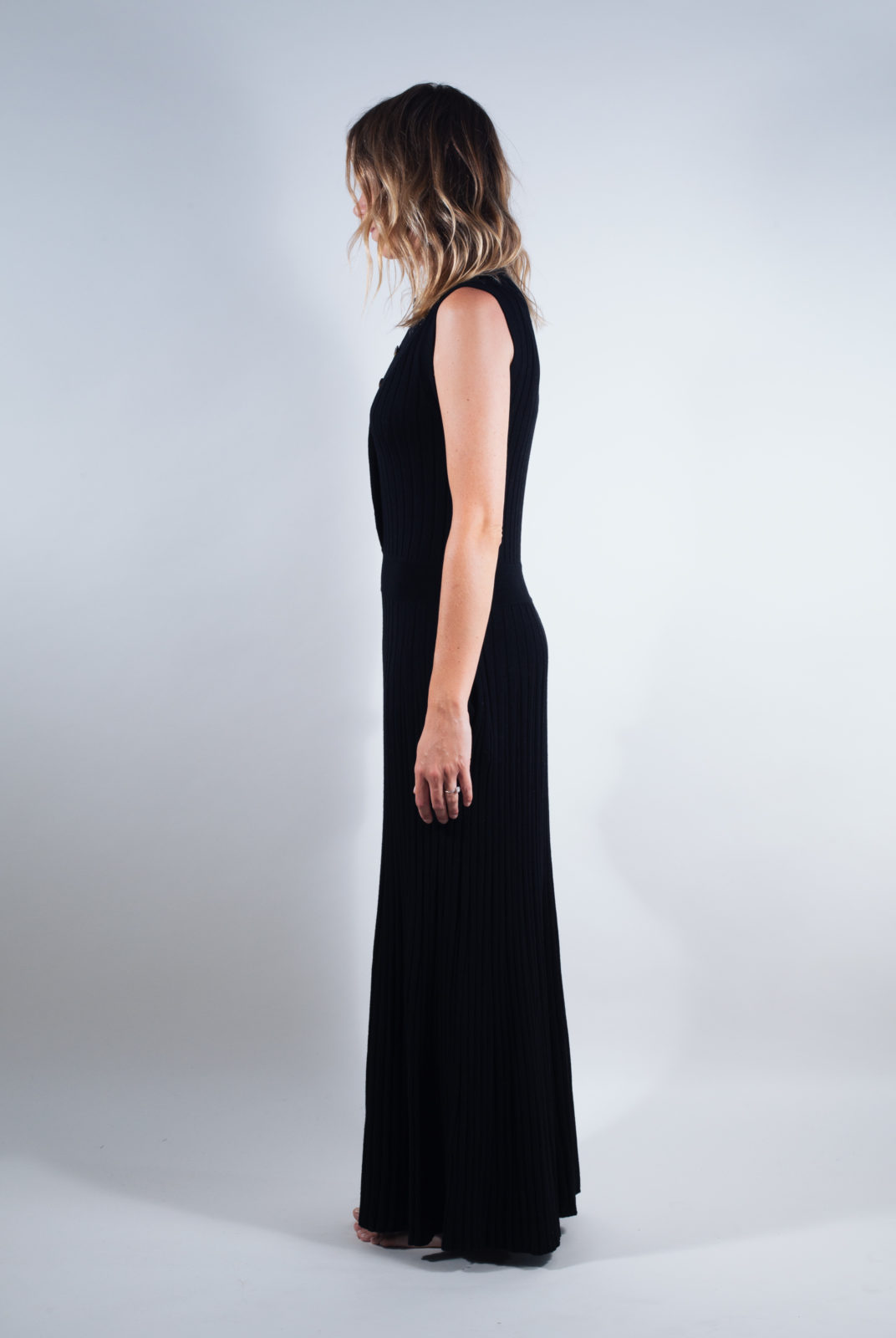 Loulou Studio black Arborea ribbed wool maxi dress.