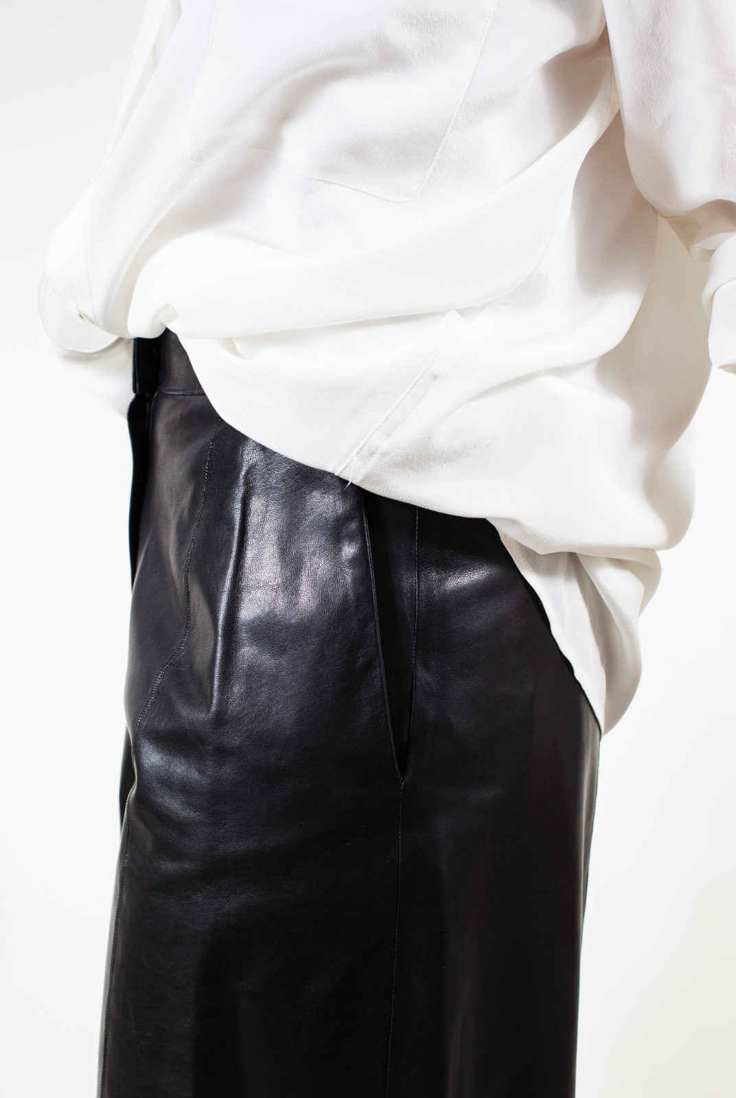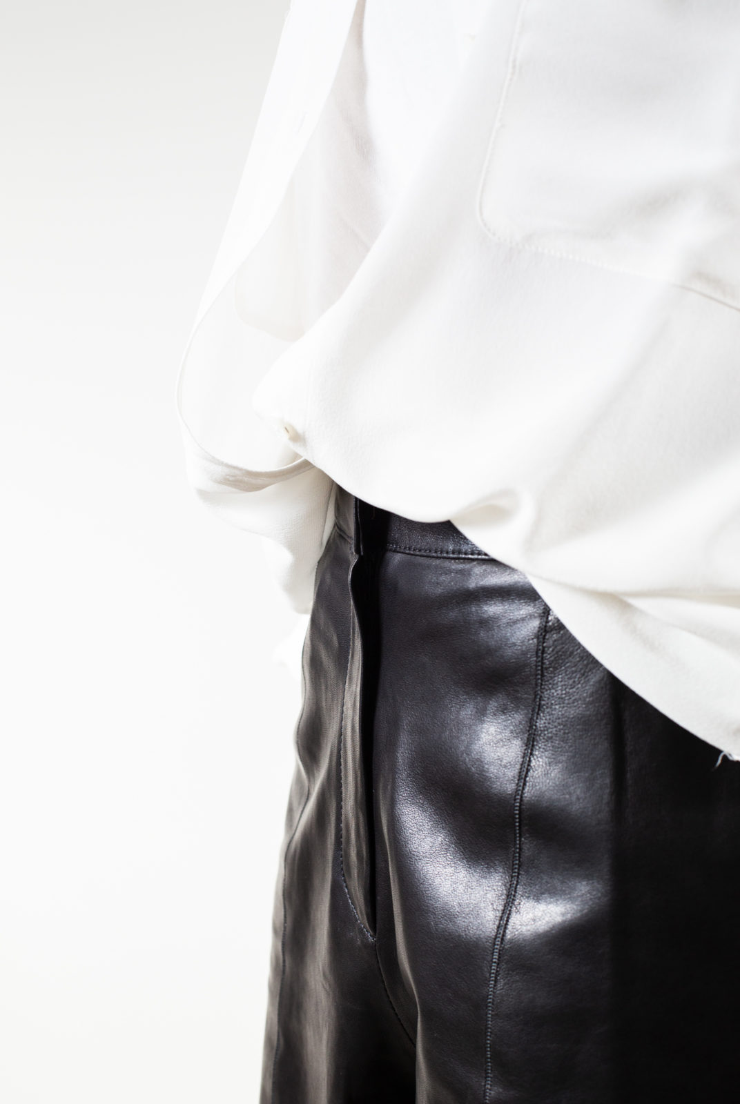 Bermuda en cuir d’agneau noir non doublé