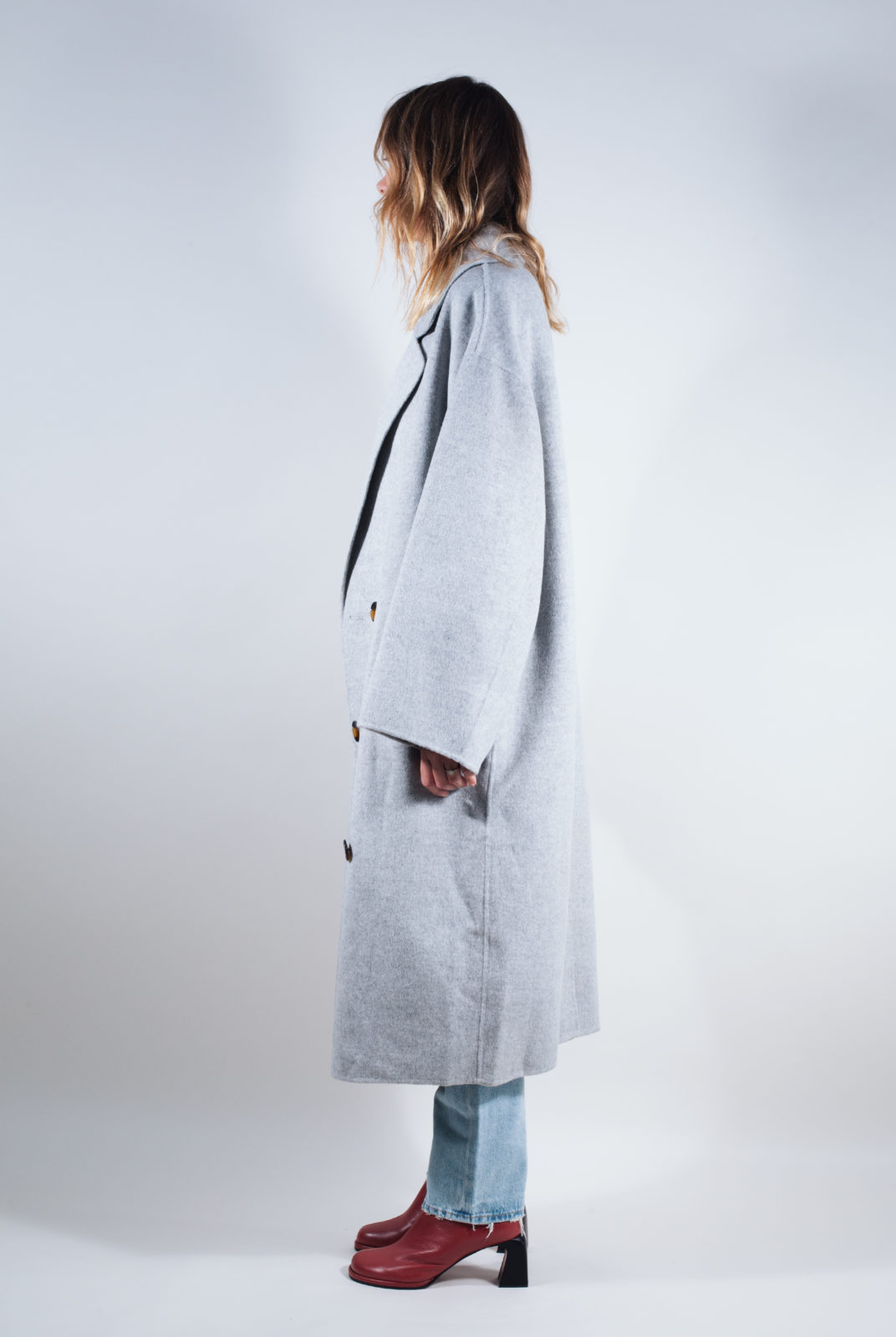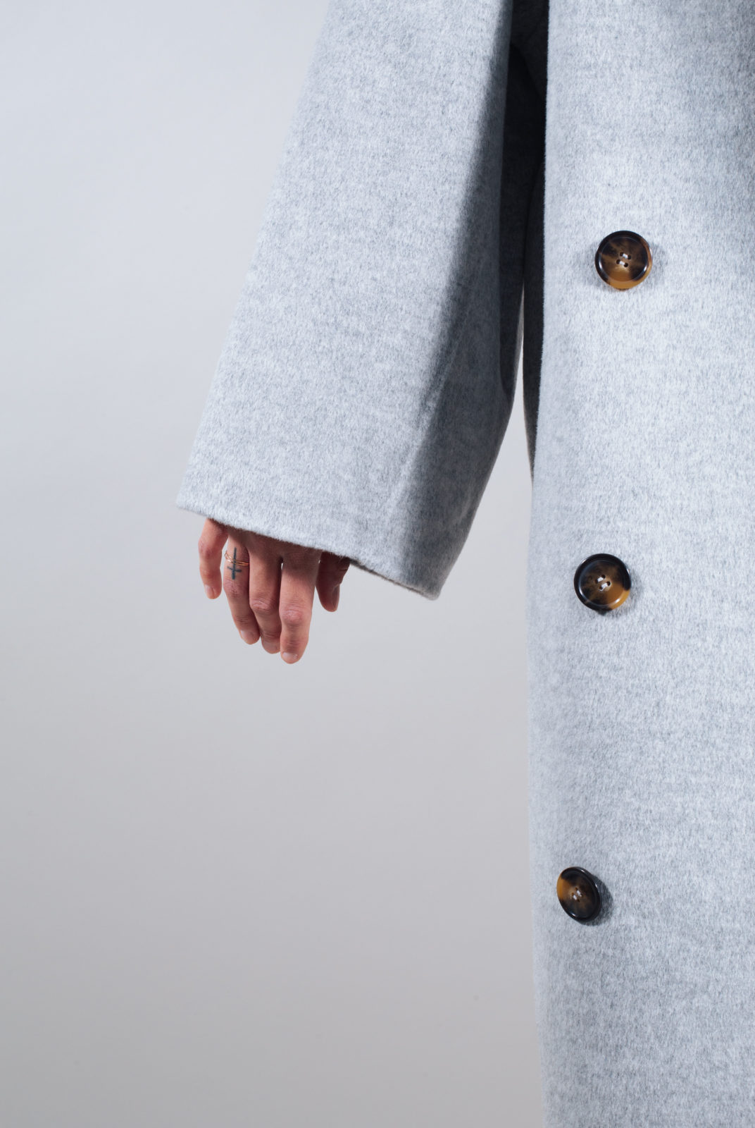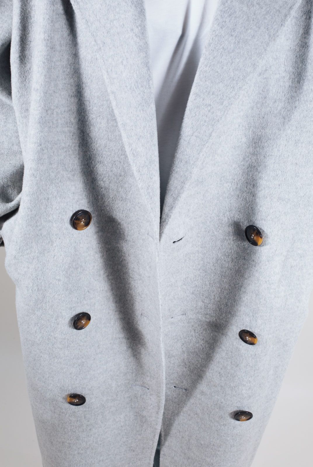 - Coupe oversize, double boutonnage à l’avant, non doublé.