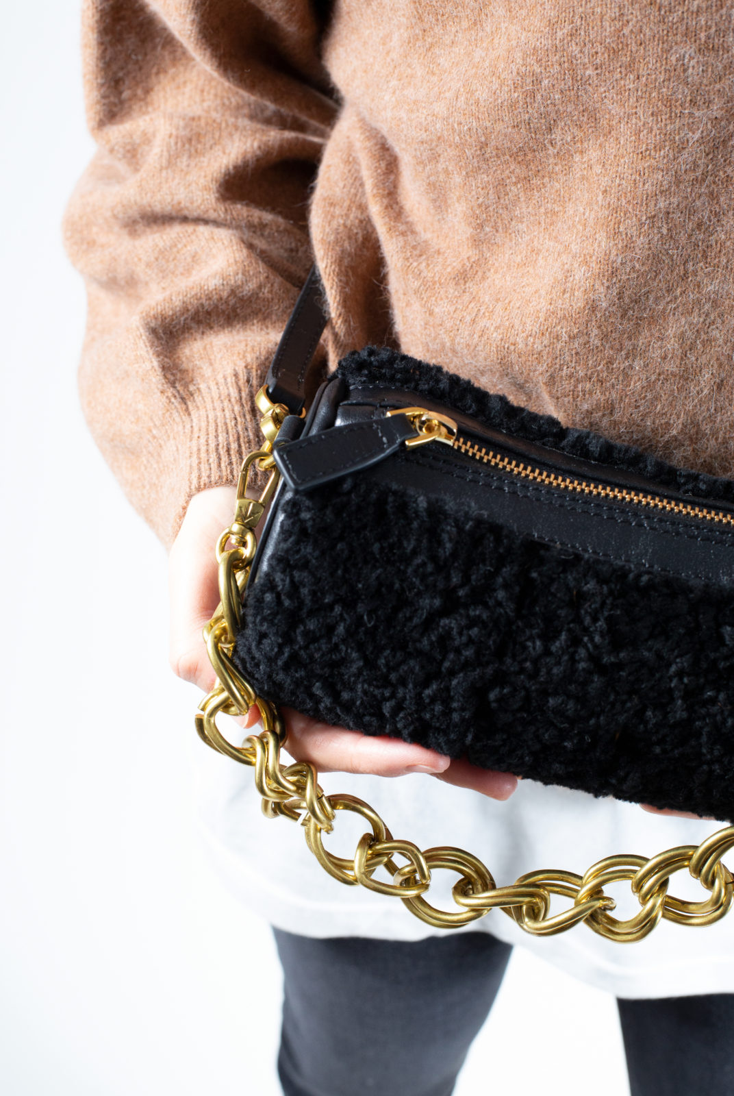 vient avec une bandoulière chaine et une bandoulière fine en cuir