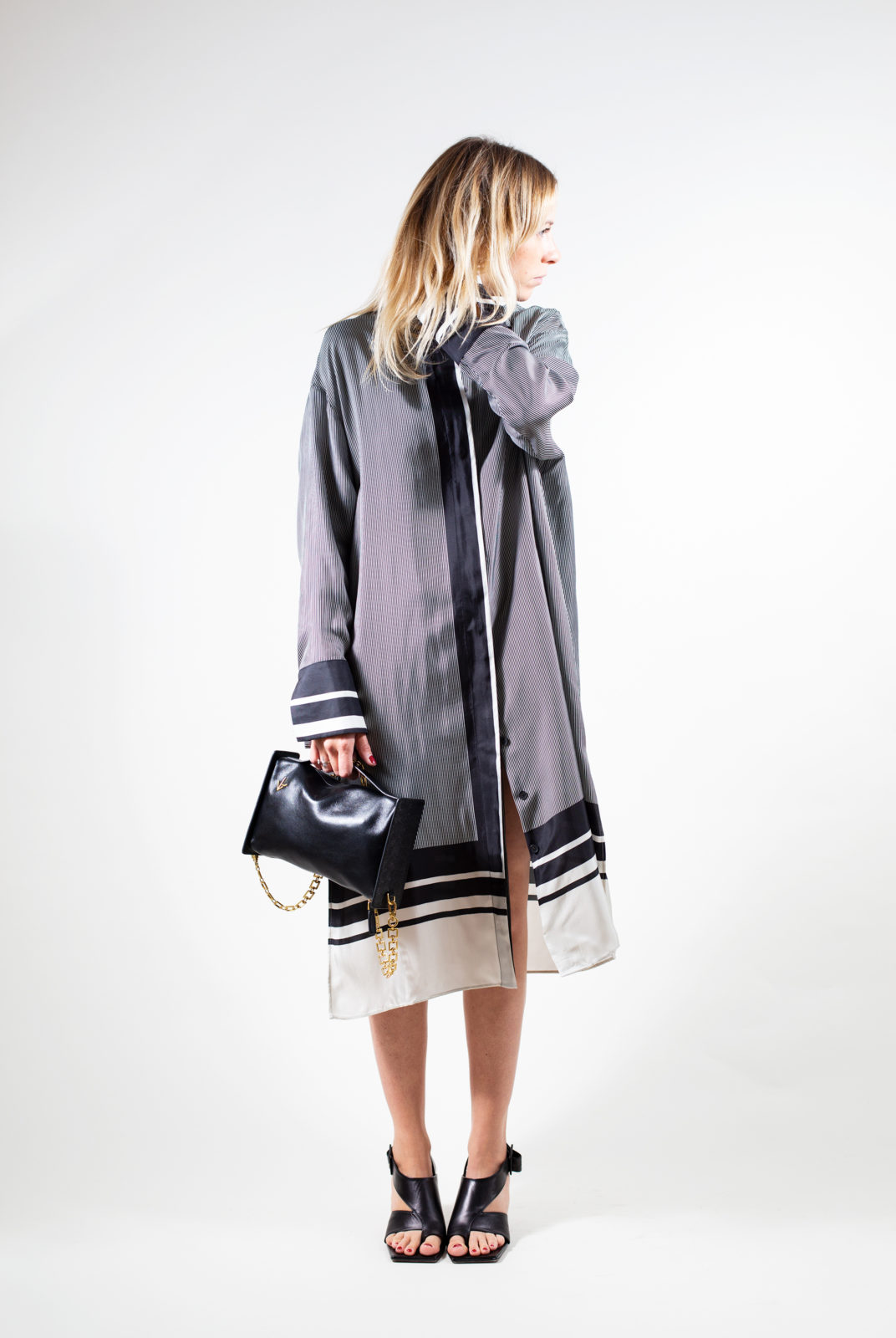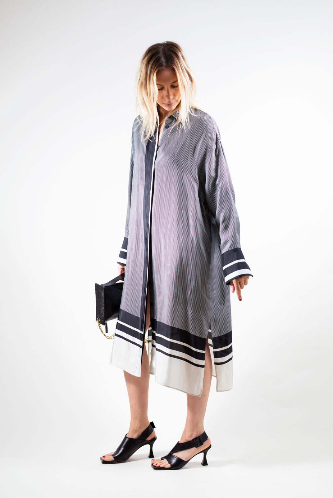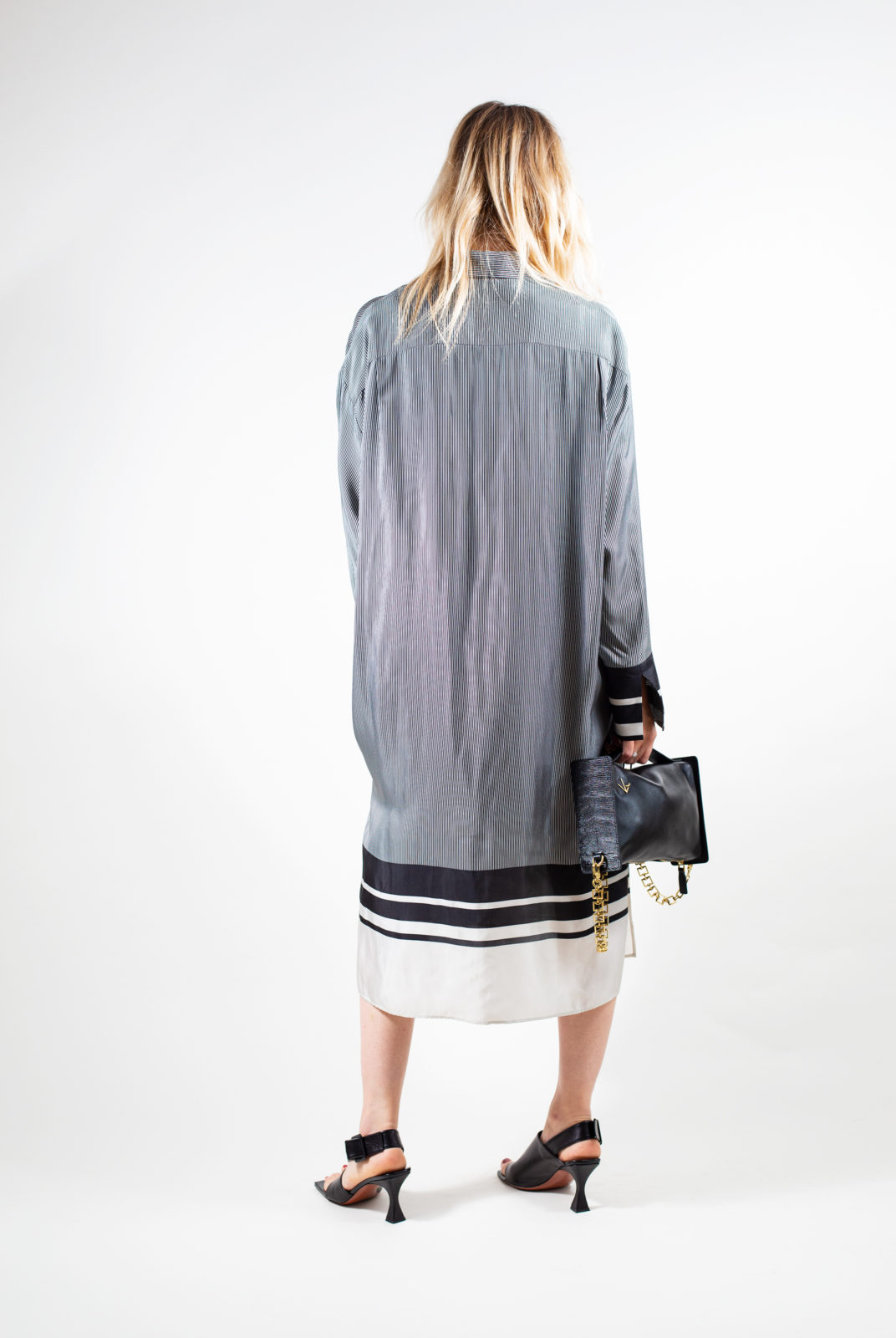 vient avec une ceinture de la même matière rayée